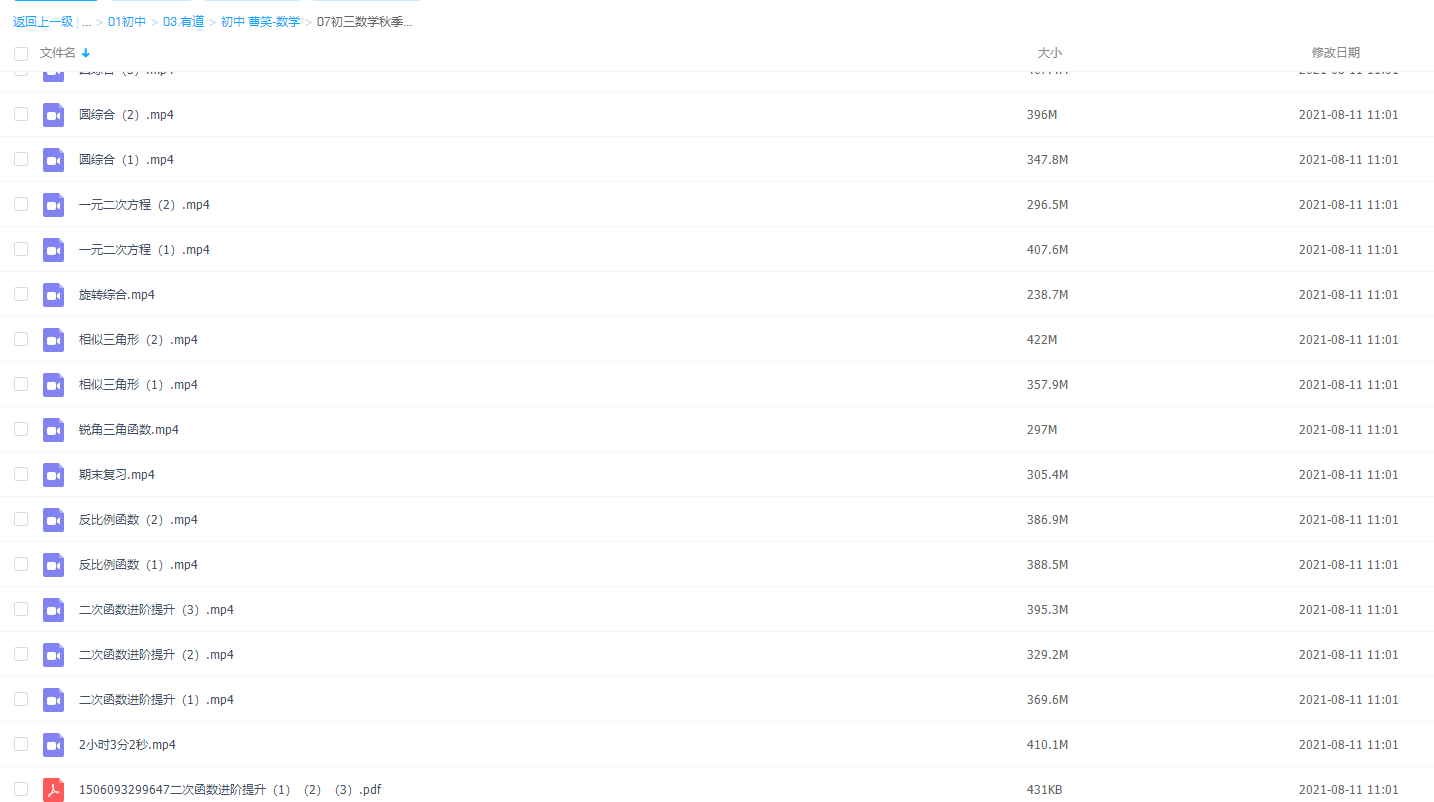 此课件来自有道精品课,有道精品课初三曹笑数学秋季提高班,包含视频课程和讲义资料。此课件主要知识点包括:反比例函数、二次函数进阶提升、圆综合、锐角三角函数 等视频