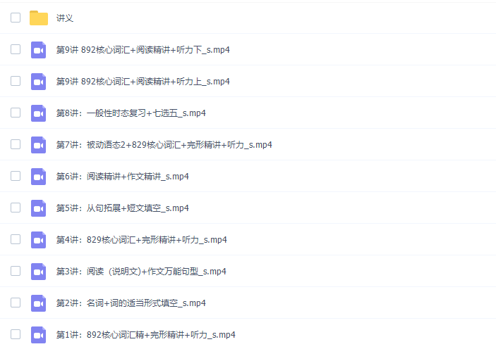 此课件来自高途课堂,翟锦鑫2021暑期初三英语暑假系统班高清视频。此课件主要知识点包括:892核心词汇、名词的适当形式填空、阅读说明文、从句拓展、短文填空、被动语态、一般性时态等等视频课程。
