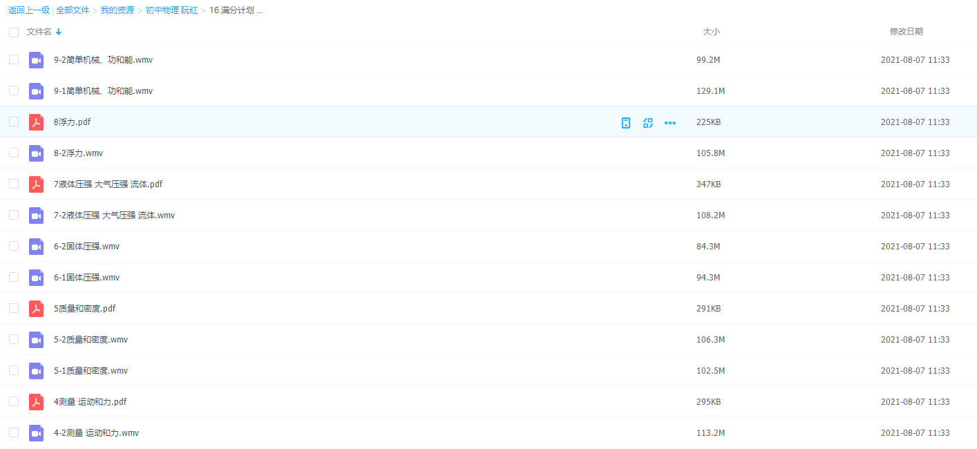 初中物理阮红满分计划之【力学和电学】深化拓展学习讲义视频课程