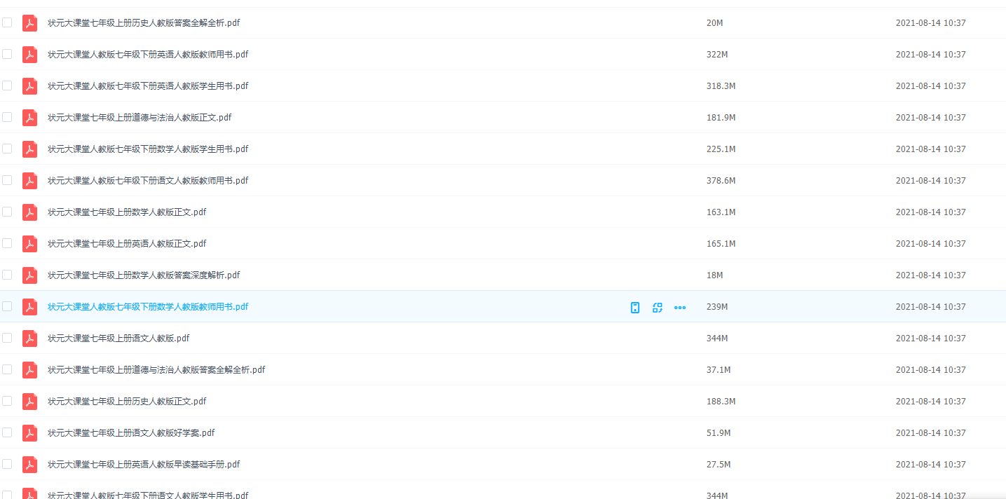 上了初一你的课程压力又变大了,7年级状元大课堂全科电子课本辅导资料北师大人教苏教大全,一条龙的资料送你到好高中!