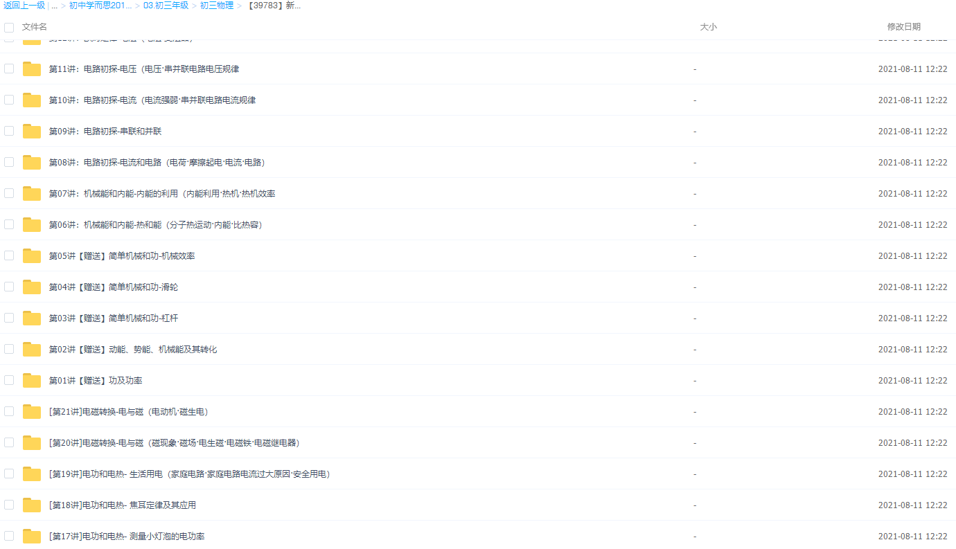 此课件来自学而思网校,【39783】新初三物理年卡超常班(沪粤版),包含视频课程和讲义资料 。此课件的主要知识点包括:中考电学计算专题电路动态分析与计算复习、简单机械和功-机械能复习、电路初探-电流(电流强弱·串并联电路电流规律)、电磁转换-中考电磁学专题之电磁铁原理等视频课程。
