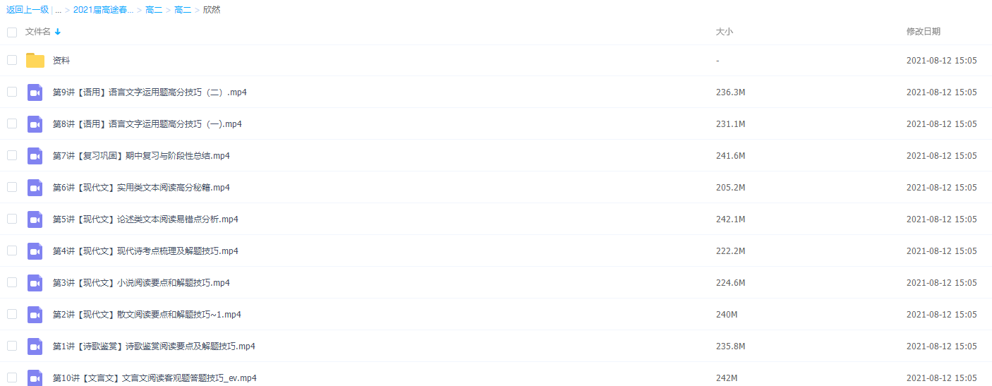 此课程来自高途课程,由谢欣然老师讲课。谢欣然老师授课风格亲切自然,深入浅出,熟知高考语文命题规律,擅长高考阅读与作文,被学员称为“语文提分专家“。此课件内容主要是:文言文阅读客观题答题技巧、诗歌鉴赏阅读要点及解题技巧、散文阅读要点和解题技巧、小说阅读要点和解题技巧、现代诗考点梳理及解题技巧、论述类文本阅读易错点分析、用类文本阅读高分秘籍、期中复习与阶段性总结和语言文字运用题高分技巧等知识点。