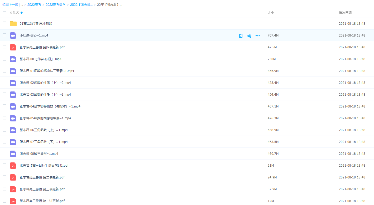2022【张志君】高中数学全年班(0808)8节讲义加视频资源