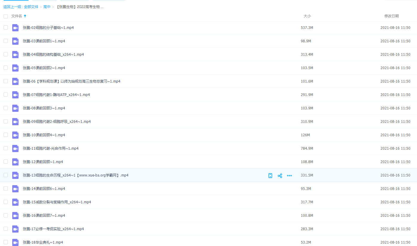 【张鹏生物】2022高考生物教材张鹏生物一轮复习A+班