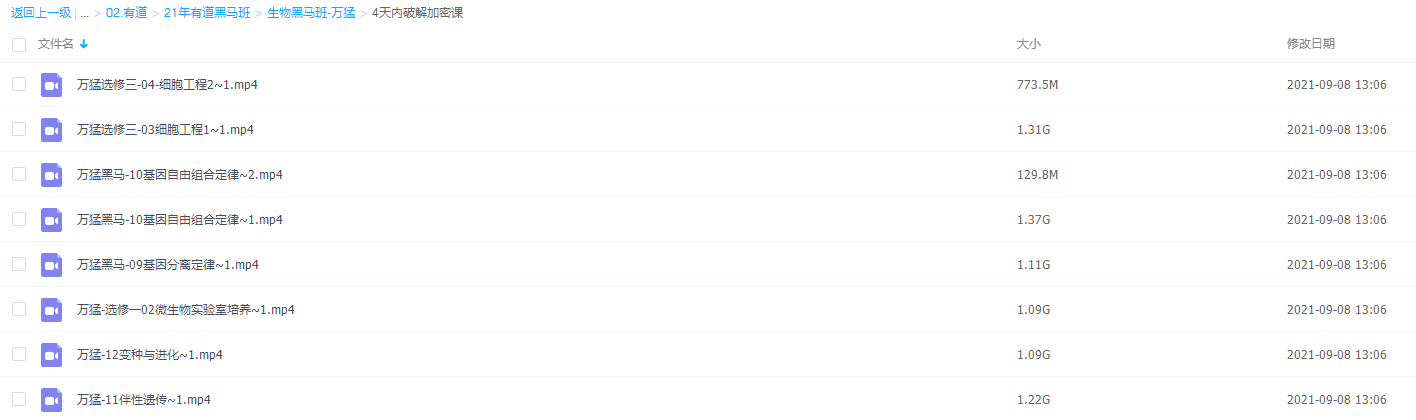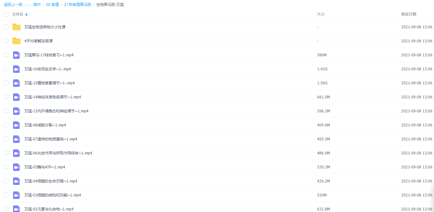 此课件来自有道精品课,2021有道精品课万猛生物高考黑马班视频课程。主讲万猛老师从教近十年,授课风格逻辑性强、风趣潇洒、总结精辟、活泼热情,以提高学生学习兴趣、快速提分见长,深受广大学生喜爱。此课件知识点主要包括元素与化合物、细胞的结构和功能、细胞的生命历程、酶与ATP、光合作用与呼吸作用综合、遗传的物质基础、减数分裂、内环境稳态和神经调节、神经体液免疫调节、植物激素调节、宏观生态学和综合复习等视频。