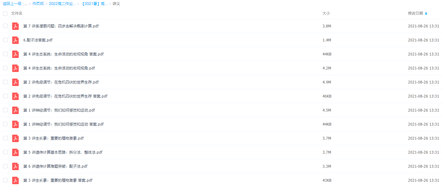 此课件来自作业帮,2021作业帮暑假 高二生物杨雪暑假尖端班,包含视频课程和讲义资料 。主讲杨雪老师化繁为简巧妙授课,课堂气氛轻松活跃,口诀技巧强势拿分,耐心讲解温暖用心。此课件主要知识点包括: 讲遗传计算难题突破:配子法、神经调节、生态系统、遗传系谱图、遗传计算基本思路:拆分法,整体法等视频。