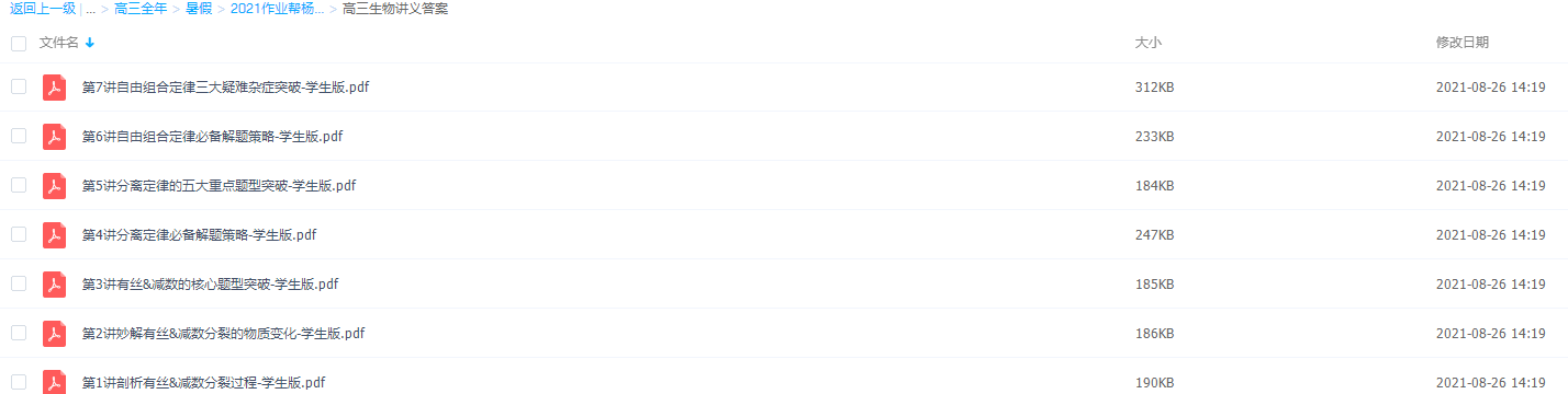 此课件来自作业帮网校,杨雪高三生物暑期班(完结),包含视频课程和讲义资料 。主讲杨雪老师化繁为简巧妙授课,课堂气氛轻松活跃,口诀技巧强势拿分,耐心讲解温暖用心。此课件主要知识点包括:剖析有丝减数分裂过程、秒解有丝减数分裂的物质变化、有丝减数的核心题型突破、分离定律的五大重点题型突破、自由组合定律必备解题策略 等视频