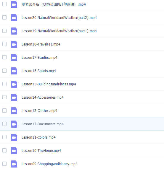 此课件来自剑桥英语憨爸巫老师剑桥英语KET单词课,此课件能够把单词融入真实生活场景(做饭、购物、逛超市)。让孩子沉浸式学习,更好的记住ket核心词汇。由憨爸课堂英语巫老师讲课,视频画质高清,并且配有随堂的练习手册,配合视频课程。