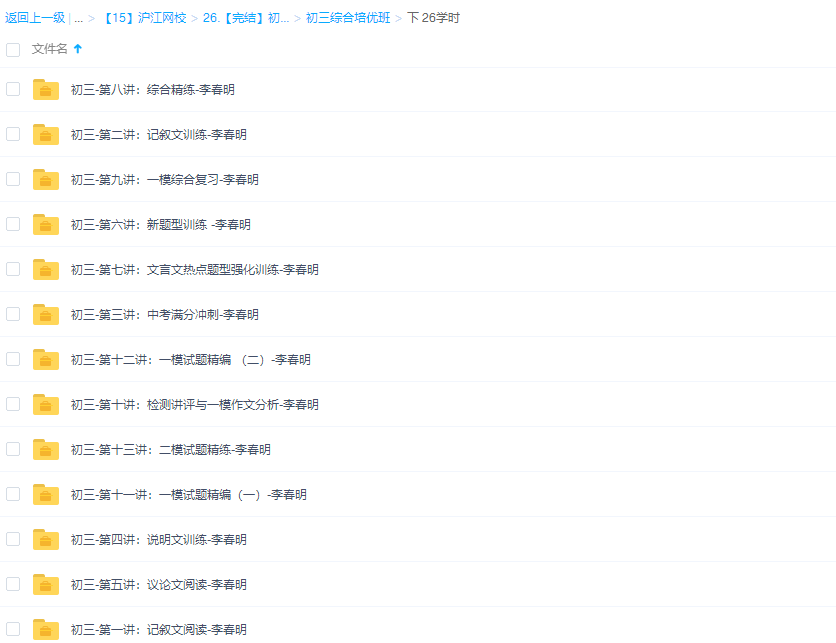 此课件来自沪江网校,初三语文(下)综合培优。此课件以单元的形式进行教学,从古文、精读、泛读、作文的角度来夯实古文字词、突破阅读理解重难点、积累素材、提高写作能力。可以培养学生的思维能力和语言表达能力。